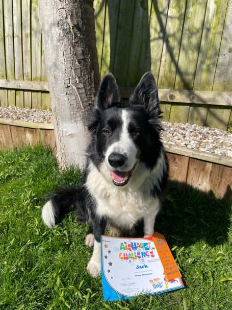 Jack was a therapy dog for twelve years, visiting schools, care homes, nursing homes, youth clubs and businesses. He competed in agility and also stared in a film. He attended Crufts twice as a therapy dog and also competed in obedience and hoopers.