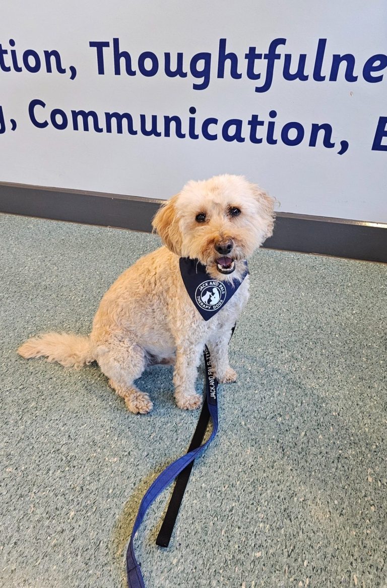 Our therapy dogs are friendly and calm and support pupils and students so they can interact together.